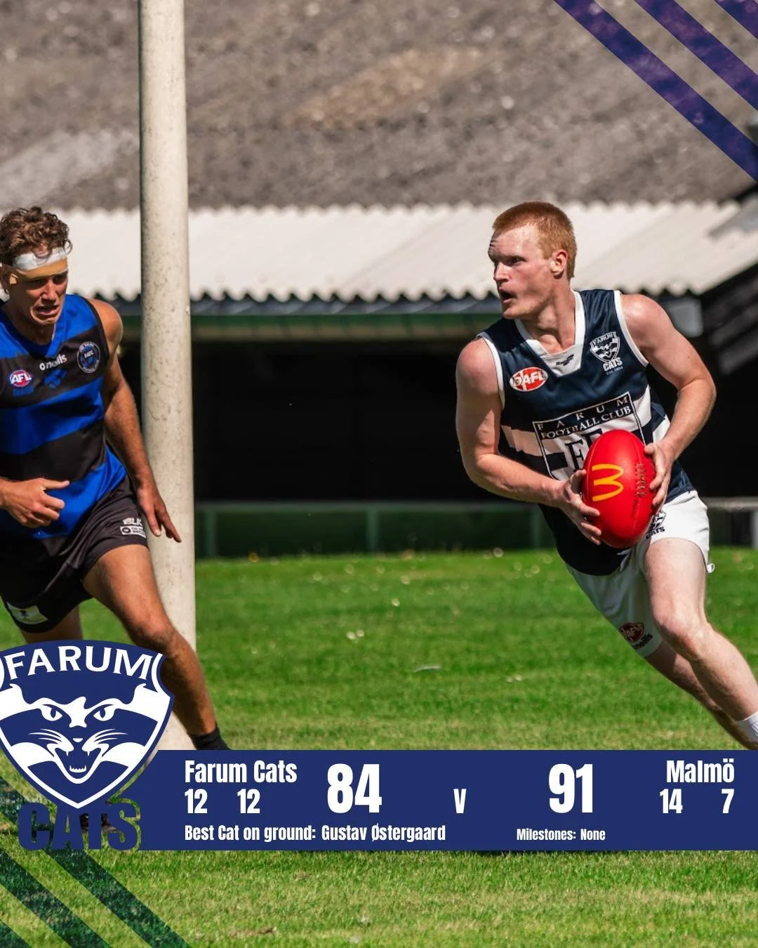 Lørdagens kamp var endnu en intensiv og god en af slagsen. Dog desværre endnu et nederlag til Farum Cats. Det var en meget tæt kamp der blev afgjort i de aller sidste minutter af fjerder quarter. Farum var bagud med blot 7 point og kæmpede hårdt for at indhente det. Desværre uden succes. Nu har vi en tiltrængt bye-weekend og gør comeback næste lørdag mod VEST i Aalborg.